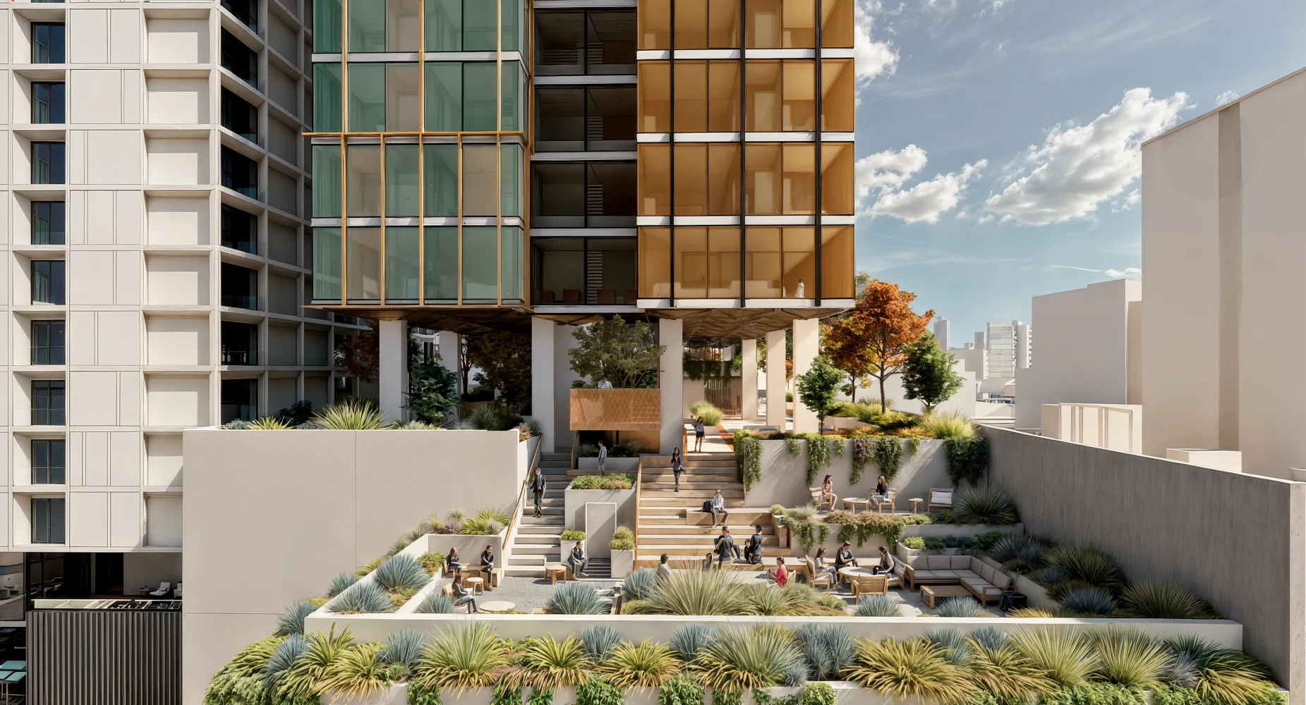 Our vision wasto elevate and transcend the student housing offerings within the Perth landscapeby creating a distinct destination with genuine amenities, echoing a proud local identity.The new collection of buildings will be under-pinned by versatile offerings, curated amenities and an inclusive environment to welcome the community and appeal to a diverse group of patrons and occupants.”Flexible typologies that can be easily changed and amended provide greater control to the architectural program so that all user groups can be adequately catered for as user needs may alter over time.
