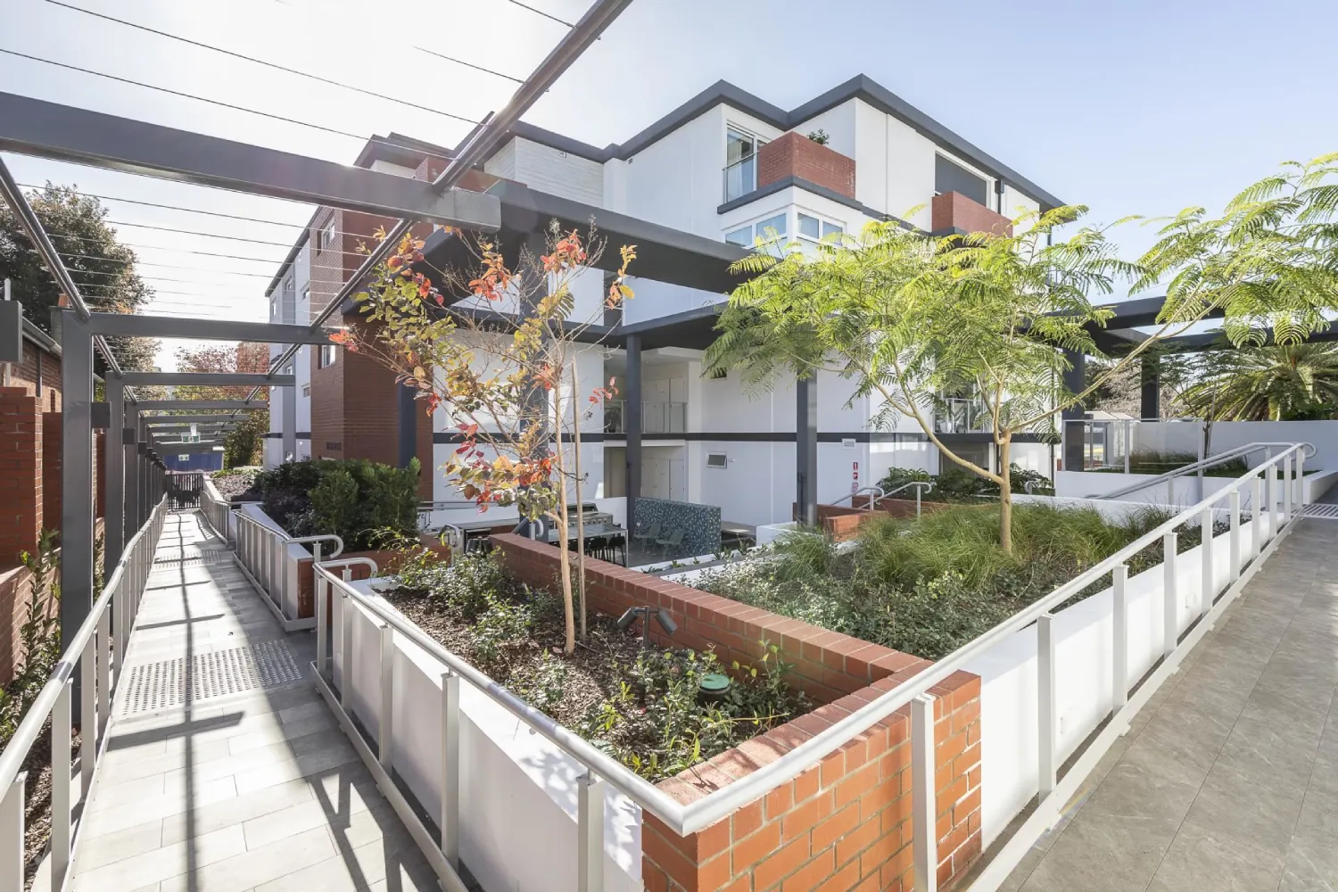 The site was perceived as an ‘urban oasis’, given the lush parkland of Brigatti Park directly to the west. Based on this, the design intention was for this green space to inform and be celebrated within the architecture.