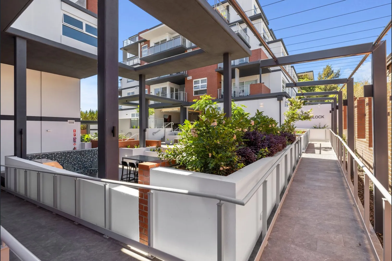 Accommodation is provided across two separate low-rise buildings, allowing for the penetration of natural light and ventilation while maintaining privacy between individual apartments.